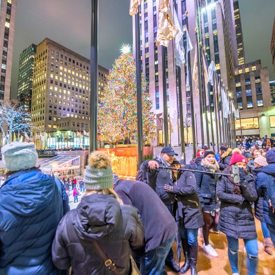 Nenhuma viagem a Nova York no Natal está completa sem uma visita à famosa árvore de Natal no Rockefeller Center. A árvore, geralmente acesa no final de novembro, é o epicentro das festividades natalinas da cidade. Com dezenas de milhares de luzes LED e uma estrela de cristal Swarovski no topo, ela atrai turistas de todo o mundo. Aproveite também para patinar no gelo na icônica pista de patinação, com a árvore e os arranha-céus de Manhattan como pano de fundo.